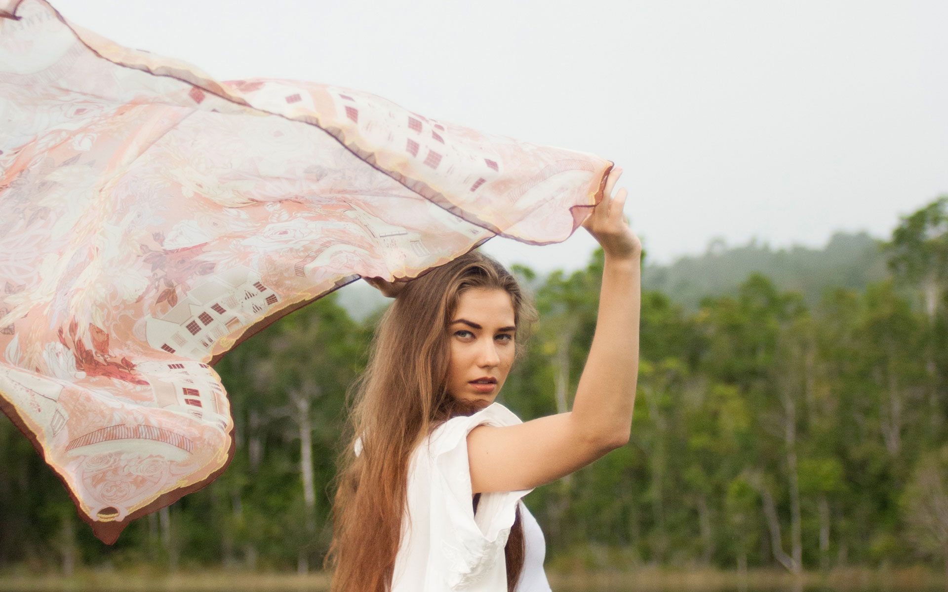 ผ้าพันคอ (ขนาด 100×100 ซม. สีโอรส) ราคา 450 บาท